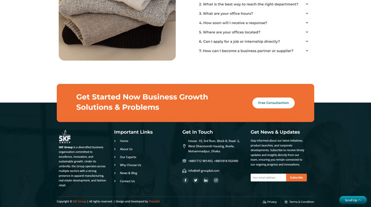 SKF Group is a diversified and forward-thinking business conglomerate with a strong presence across multiple sectors in Bangladesh. Established with a vision to contribute to national growth through quality, innovation, and integrity, SKF Group continues to build a strong reputation for excellence and reliability in every field it operates.